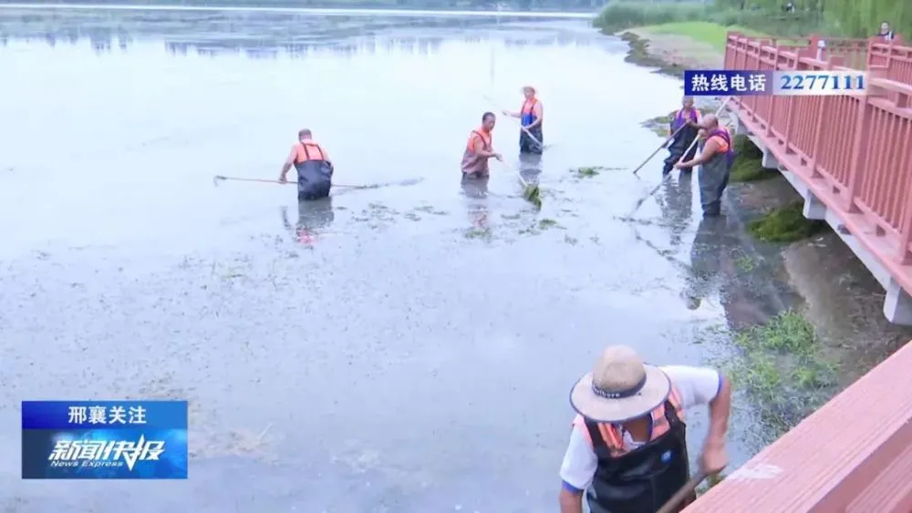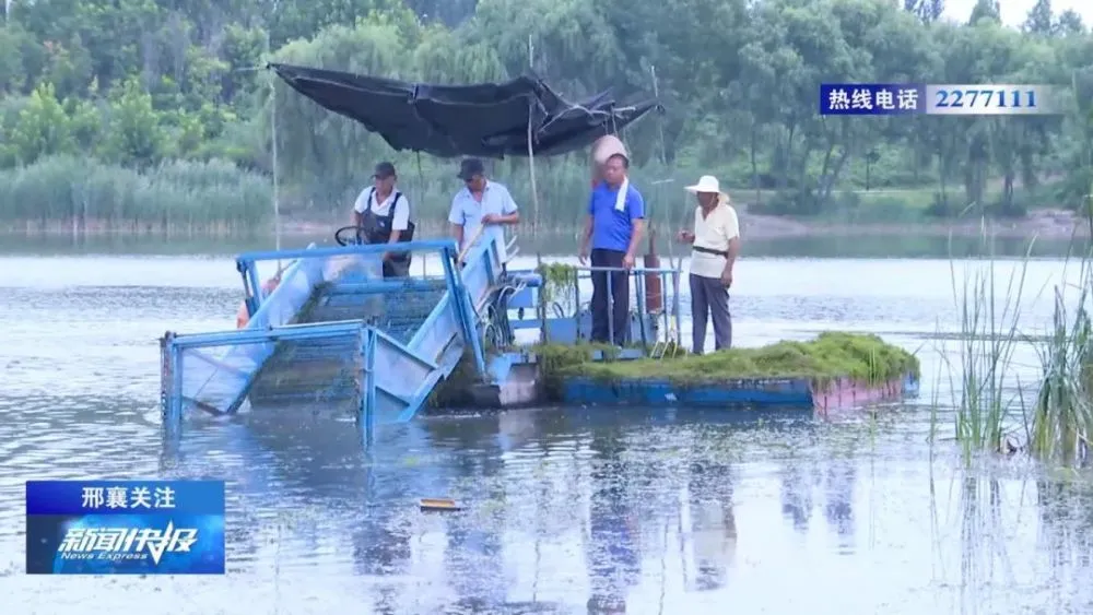 针对这一情况,他们专门组建了一支十几人的河道清洁队伍,采用“割草船+人工打捞”的方式,及时对河道内水草进行不间断的巡回收割、打捞、清运,目前每天清理河道水面1万余平方米。