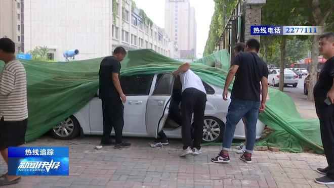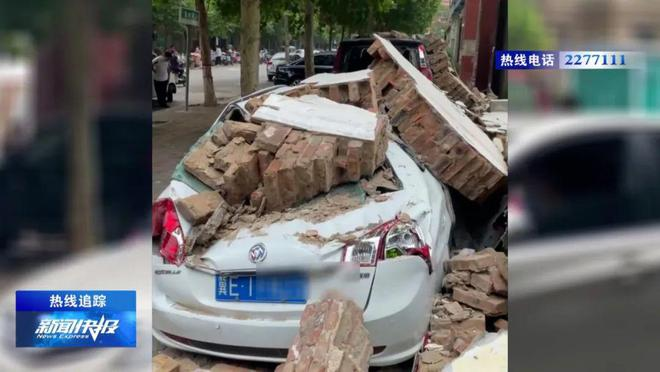 今天中午12点多,记者达到现场后看到,约有6米长的围墙倒塌,被砸车辆倒塌的墙体已经被盖了起来。附近的市民说,上午10点多,他们听见轰隆一声响,过来后发现车被砸在了下面。
