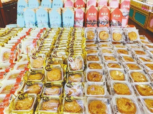 顺德路、东门里街附近多家品牌糕点店里,散装自制月饼都摆在了显眼位置,一进门就能被顾客看到。这些月饼“衣着”简单,或单个封袋包装,或由印有门店标识的纸张四个一组包装,很接地气。