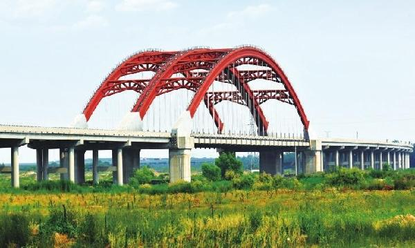 ——石家庄南绕城高速南水北调大桥,位于石家庄市南绕城高速公路主线工程上,全长260米,桥梁跨越南水北调渠,为波形钢腹板预应力混凝土变截面连续箱梁桥。