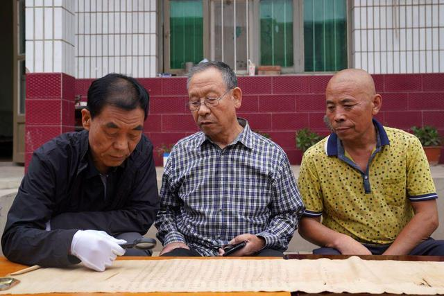 平乡县文旅局副研究馆员史清君(左一)查看清代康熙年间圣旨。