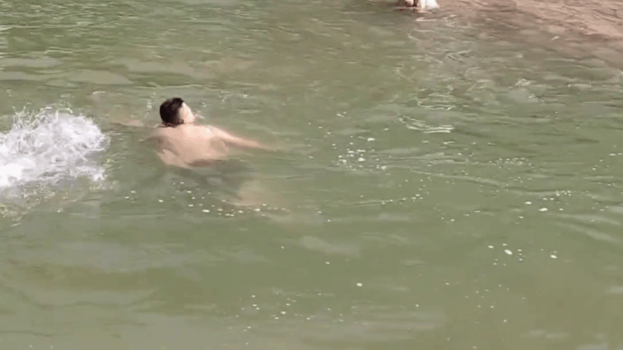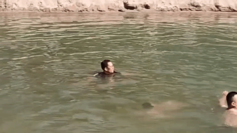 正值休假的武警河北总队邢台支队战士潘玉坤路过时,听到呼喊声,毫不犹豫朝事发地飞奔而去,边跑边脱掉上衣。水面深不见底,潘玉坤一个猛子扎了进去。