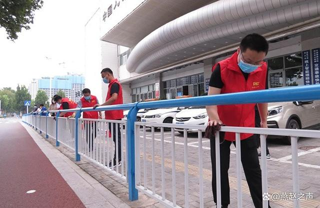日前,人保财险河北省邢台市分公司组织青年志愿者走上街头,参加市城管部门开展的“全民洗城”活动,对办公大楼周边栏杆、路灯、垃圾箱等公共区域进行认真擦拭,清扫路面垃圾,维护良好的卫生环境。