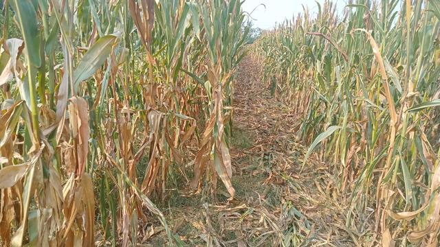收玉米棒收割机收获后的玉米地