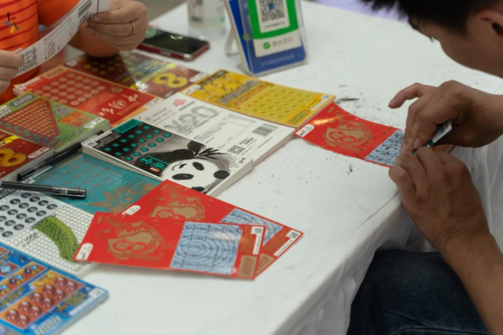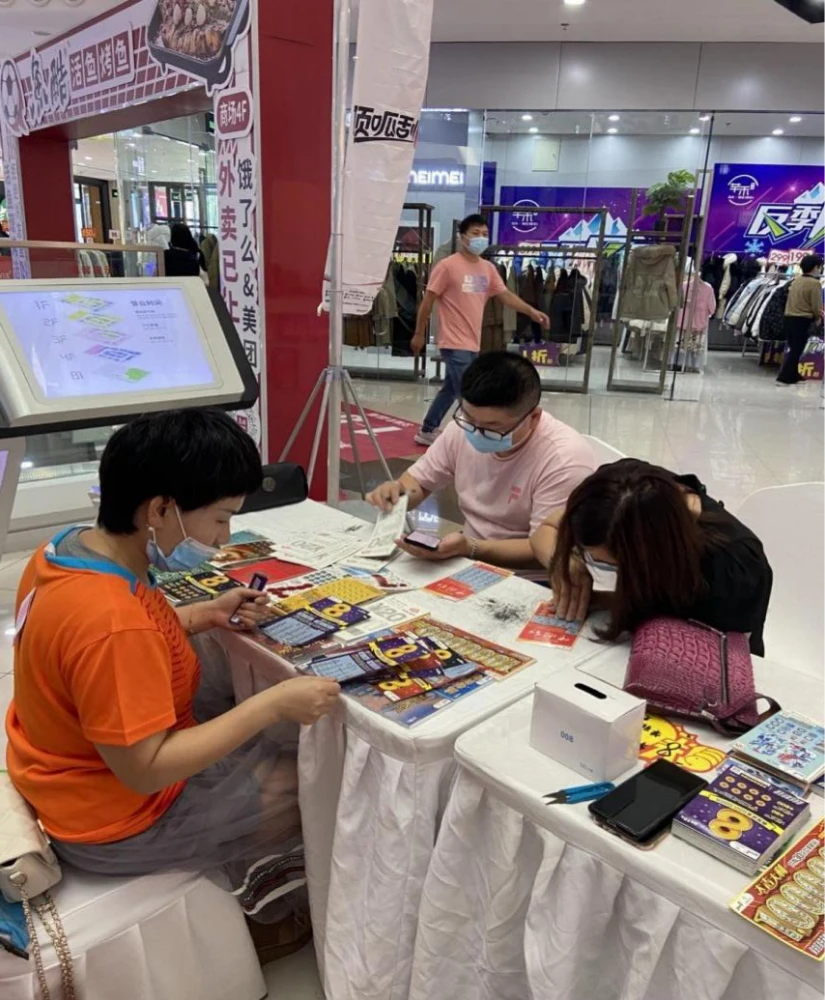 (河北省体育彩票中心邢台中心的工作人员现场销售“顶呱刮”)