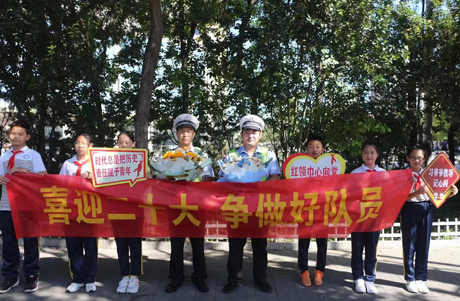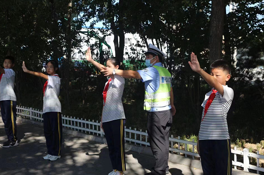9月19日上午,邢台市龙泉小学为进一步提升中小学生交通安全意识的教育,学校组织部分学生代表走出校门,走进社会,到邢台交警襄都一大队楼下道岗开展“喜迎二十大 争做好队员”的交通安全社会实践提升活动。在活动现场,执勤民警为同学们介绍了当前交通管理相关工作,现场讲解交通安全知识、回答同学们的提问,同时向同学们赠送交通安全的宣传手册,期间民警们还现场指导同学们进行交通指挥手势的学习,通过现场活动提高了学生们交通安全意识。